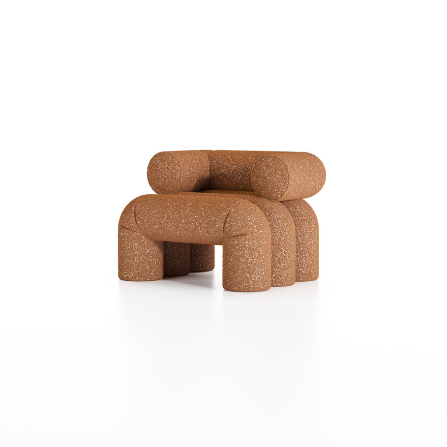 Aurora Armchair is a decorative lounge chair that combines flowing lines and soft oversized curves.